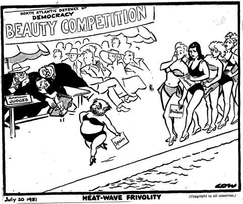 El libro fue presentado en Pontevedra el pasado 10 de noviembre, y su amable autora me ha facilitado algunas imágenes con las que ilustró su conferencia, viñetas extraídas de periódicos de la época que sirven para explorar la perspectiva de otro tiempo, cuando un futuro que ya es pasado era pura hipótesis y motivo de especulación.